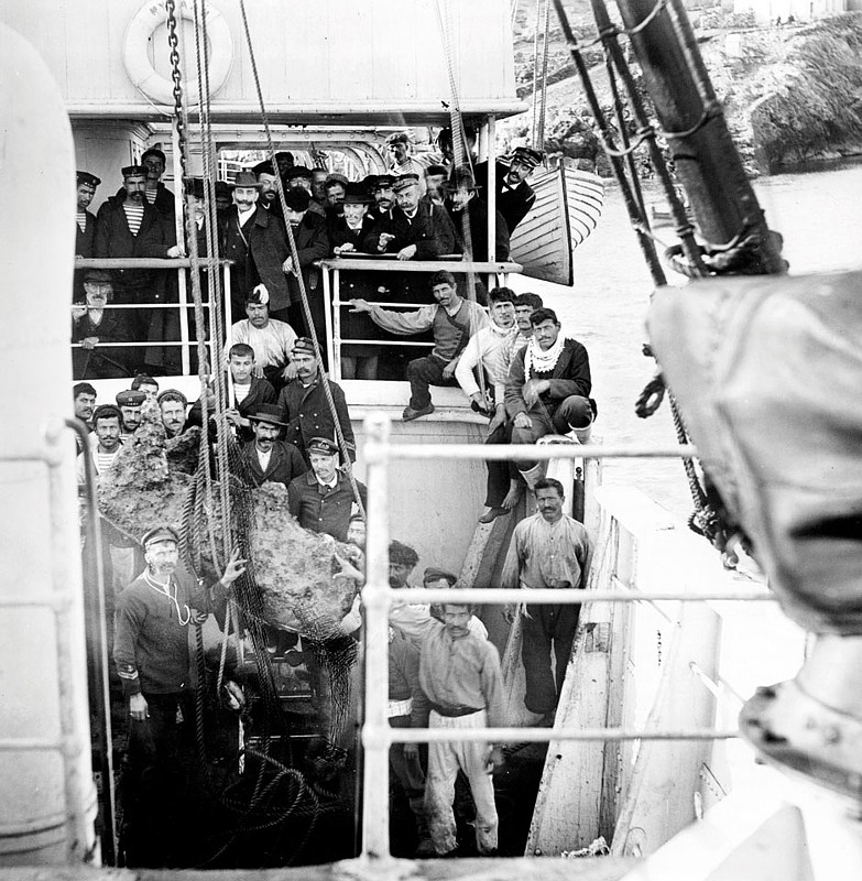 Εκπρόσωποι της Ελληνικής Κυβέρνησης, πλήρωμα του πολεμικού πλοίου Μυκάλη, η ομάδα των δυτών – σφουγγαράδων τον χειμώνα 1900/1901