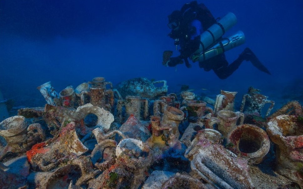 Το θέαμα που αντικρύζει του κόβει την ανάσα. Μπροστά του απλώνεται ένα ναυαγισμένο αρχαίο πλοίο. Αγάλματα, αμφορείς και αρχαία αντικείμενα κείτονται διάσπαρτα σε όλη την έκταση του βυθού. Το πιο κοντινό του αντικείμενο είναι ένα μπρούτζινο χέρι. Χωρίς δεύτερη σκέψη, το ανεβάζει στην επιφάνεια.