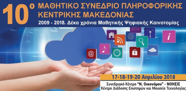 Στις 17-18-19-20 Απριλίου 2018 πραγματοποιείται το 10ο Μαθητικό Συνέδριο Πληροφορικής στο Κέντρο Διάδοσης Επιστημών και Μουσείο Τεχνολογίας -ΝΟΗΣΙΣ. Συμμετέχουν περισσότεροι από 3000 μαθητές, προερχόμενοι από 145 σχολικές μονάδες της Κεντρικής Μακεδονίας και όμορες Περιφερειακές Διευθύνσεις Εκπαίδευσης. Με την καθοδήγηση 410 εκπαιδευτικών τους, θα παρουσιάσουν 243 καινοτόμες εργασίες με αντικείμενο τον προγραμματισμό εφαρμογών, τη ρομποτική, αυτοματισμούς και ερευνητικά Project.