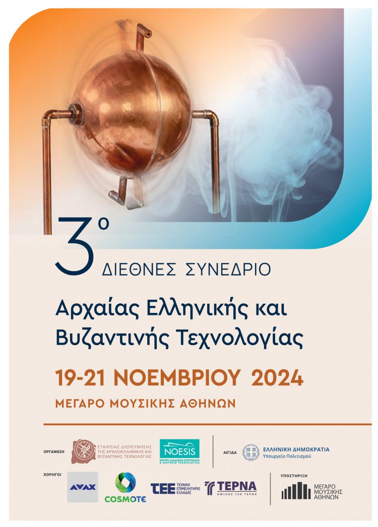 Με αφετηρία την αξία της επιστημονικής έρευνας και υπηρετώντας πιστά τον στόχο να προάγει αυτήν και να διαδώσει τις ιστορικές γνώσεις γύρω από τα τεχνολογικά επιτεύγματα των Αρχαίων Ελλήνων μέχρι και το Βυζάντιο, η Εταιρεία Διερεύνησης της Αρχαιοελληνικής και Βυζαντινής Τεχνολογίας (ΕΔΑΒυΤ)*, διοργανώνει από κοινού με το Κέντρο Διάδοσης Επιστημών και Μουσείο Τεχνολογίας – ΝΟΗΣΙΣ*, το 3ο Διεθνές Συνέδριο Αρχαίας Ελληνικής και Βυζαντινής Τεχνολογίας, από τις 19 μέχρι 21 Νοεμβρίου 2024.