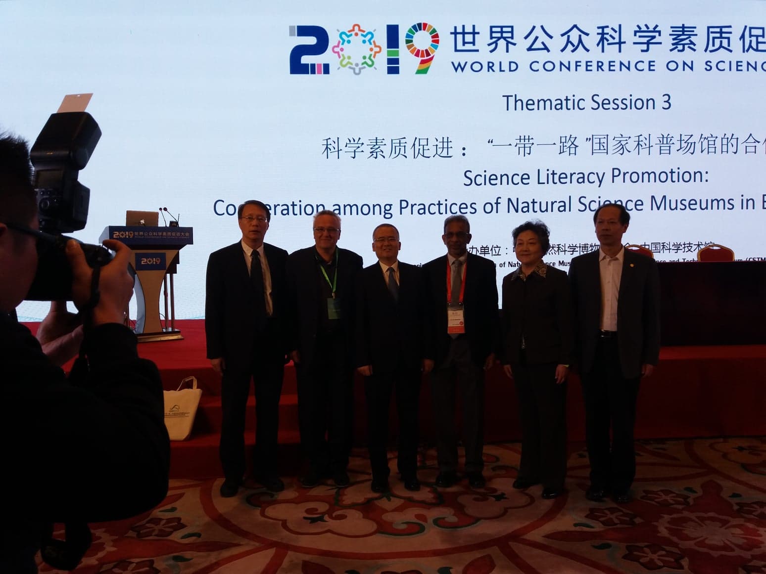 Στη φωτογραφία διακρίνονται ο Γενικός Διευθυντής ΝΟΗΣΙΣ, Θανάσης Κοντονικολάου, ο Πρόεδρος της Ακαδημίας Επιστημών Κίνας , ο Υπουργός Πολιτισμού της Σρι Λάνκα, η Πρόεδρος της Ακαδημίας Τεχνολογικών Κέντρων και Μουσείων Κίνας, ο Πρόεδρος του Μουσείου Επιστημών και Τεχνολογίας Πεκίνου και ο Γενικός Γραμματέας της Ένωσης Μουσείων Κίνας.