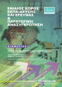 Το Κέντρο Διάδοσης Επιστημών και Μουσείο Τεχνολογίας ΝΟΗΣΙΣ υπό την αιγίδα του Υουργείου Παιδείας Έρευνας και Θρησκευμάτων διοργανώνει στις 9 και 10 Ιουνίου διημερίδα με θέμα: “Ενιαίος Χώρος Εκπαίδευσης και Έρευνας και Παραγωγική Ανασυγκρότηση”.