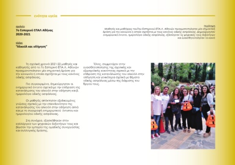 7ο Εσπερινό ΕΠΑΛ Αθήνας δράση για την κοινωνία η οποία σχετίζεται με τους κανόνες οδικής ασφάλειας. Δημιούργησαν