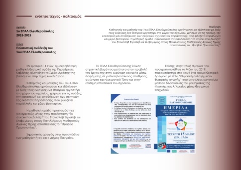 1ο ΕΠΑΛ Ελευθερούπολης τους ενέργειες ένα θεατρικό εργαστήρι στο χώρο του σχολείου, χρήσιμο για τις πρόβες, την