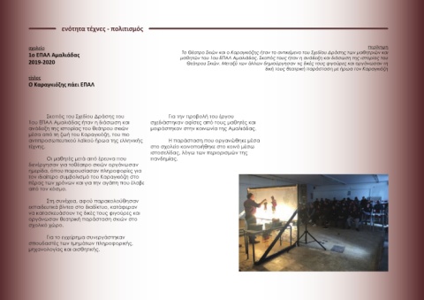 2019-2020 Θεάτρου Σκιών. Μεταξύ των άλλων δημιούργησαν τις δικές τους φιγούρες και οργάνωσαν τη