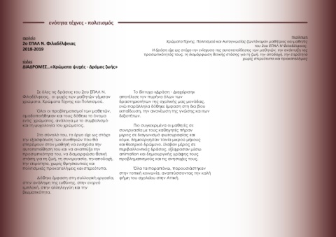 2ο ΕΠΑΛ Ν. Φιλαδέλφειας Χρώματα Τέχνης, Πολιτισμού και Αυτογνωσίας ζωντάνεψαν μαθήτριες και μαθητές