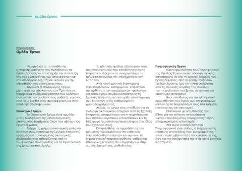 τεκμηριώνει τη δημιουργικότητα των δράσεων και λειτουργούν συμβουλευτικά προς τις οικονομικό αντικείμενο.
