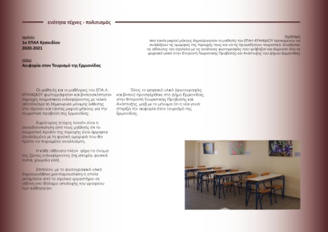 2020-2021 τις αίθουσες του σχολείου με τις ανάλογες φωτογραφίες που τράβηξαν και δώρισαν όλο το
