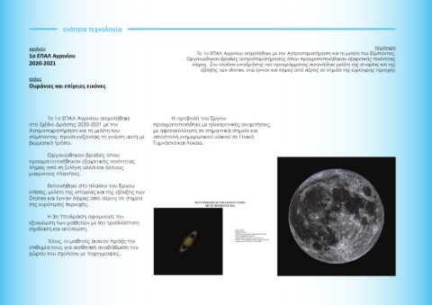 Το 1ο ΕΠΑΛ Αγρινίου ασχολήθηκε με την Αστροπαρατήρηση και τη μελέτη του Σύμπαντος.
