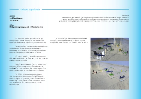 έργο τρισδιάστατης σχεδίασης και εκτύπωσης. προβολής υλικού στην ιστοσελίδα του σχολείου.