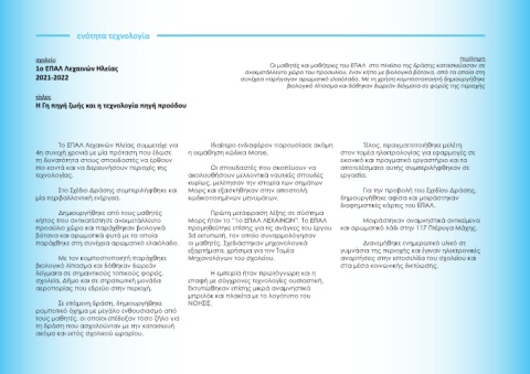 2021-2022 συνέχεια παρήγαγαν αρωματικό ελαιόλαδο. Με τη χρήση κομποστοποιητή δημιουργήθηκε