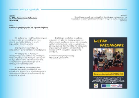 Οι μαθήτριες και μαθητές του 1ου ΕΠΑΛ Κασσάνδρας κατασκεύασαν ένα