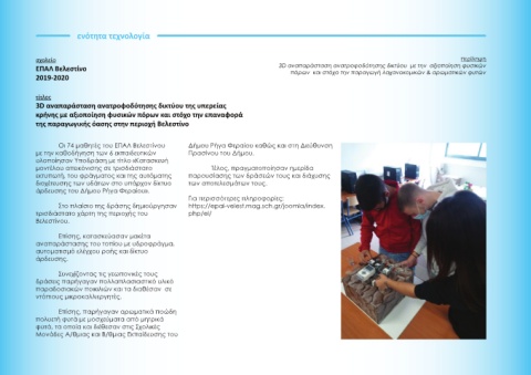 ΕΠΑΛ Βελεστίνο 3D αναπαράσταση ανατροφοδότησης δικτύου με την αξιοποίηση φυσικών