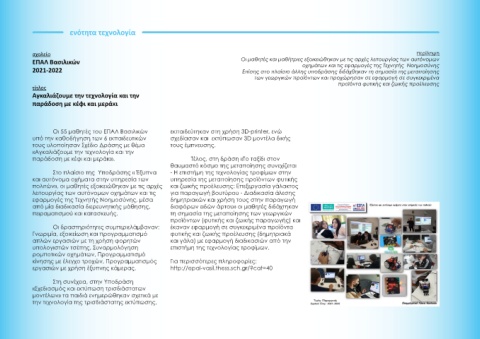 2021-2022 Επίσης στο πλαίσιο άλλης υποδράσης διδάχθηκαν τη σημασία της μεταποίησης