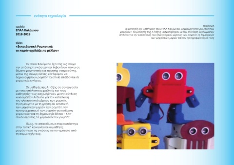 2018-2019 Arduino για την κατασκευή του ηλεκτρονικού μέρους των ρομπότ τη δημιουργία