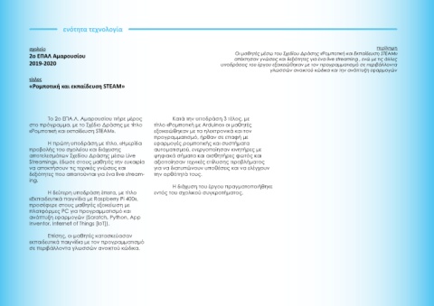 2ο ΕΠΑΛ Αμαρουσίου Οι μαθητές μέσω του Σχεδίου Δράσης «Ρομποτική και Εκπαίδευση STEAM»
