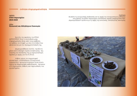 2019-2020 Δημιουργήθηκαν προϊόντα με τις αρχές της κοινωνικής, αλληλέγγυας οικονομίας