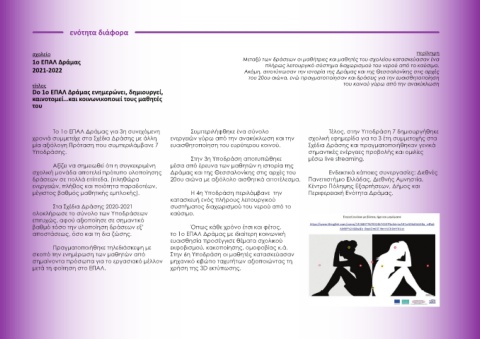 Το 1ο ΕΠΑΛ Δράμας για 3η συνεχόμενη Συμπεριλήφθηκε ένα σύνολο Τέλος, στην Υποδράση 7 δημιουργήθηκε