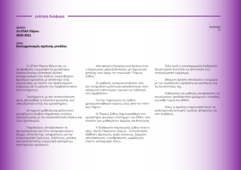 Το ΕΠΑΛ Πάρου θέλοντας να Μία ακόμη ενδιαφέρουσα δράση ήταν Όλη αυτή η ολοκληρωμένη διαδικασία