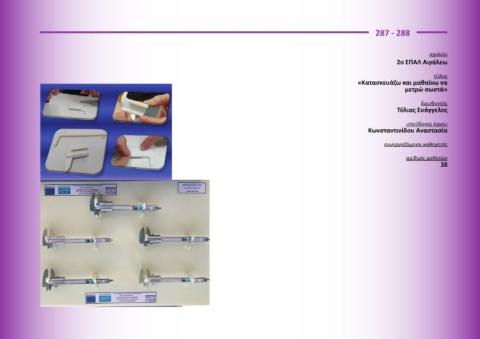 287 - 288 σχολείο 2ο ΕΠΑΛ Αιγάλεω τίτλος «Κατασκευάζω και μαθαίνω να μετρώ σωστά» διευθυντής Τόλιας Ευάγγελος υπεύθυνος έργου Κωνσταντινίδου Αναστασία συνεργαζόμενοι καθηγητές αριθμός μαθητών 38