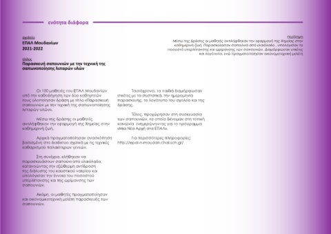 ΕΠΑΛ Μουδανίων Μέσω της δράσης οι μαθητές αντιλήφθηκαν την εφαρμογή της Χημείας στην