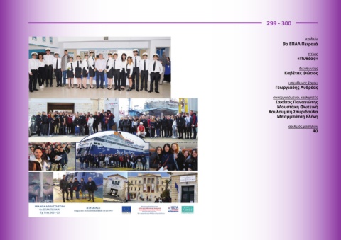 299 - 300 σχολείο 9ο ΕΠΑΛ Πειραιά τίτλος «Πυθέας» διευθυντής Καβέτας Φώτιος υπεύθυνος έργου Γεωργιάδης Ανδρέας συνεργαζόμενοι καθηγητές Σακάτος Παναγιώτης Μουστάκη Φωτεινή Κουλουμπή Σπυριδούλα Μπαρμπάτση Ελένη αριθμός μαθητών 40