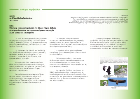 4ο ΕΠΑΛ Αλεξανδρούπολης Σκοπός της δράσης είναι η ανάδειξη του περιβαλλοντικού πλούτου της περιοχής.