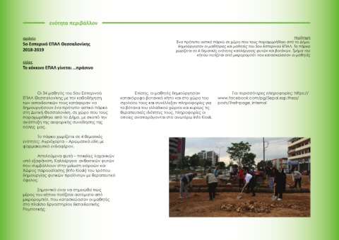 5ο Εσπερινό ΕΠΑΛ Θεσσαλονίκης Ένα πρότυπο αστικό πάρκο σε χώρο που τους παραχωρήθηκε από το Δήμο,