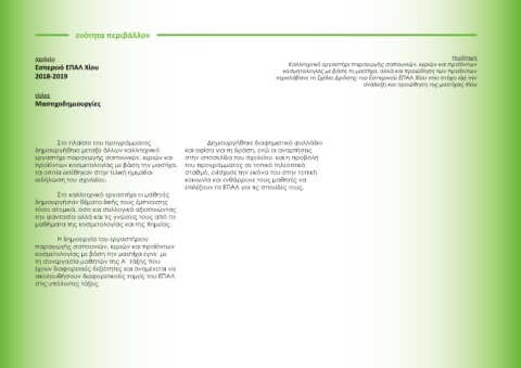 2018-2019 περιελάβανε το Σχέδιο Δράσης του Εσπερινού ΕΠΑΛ Χίου που στόχο είχε την