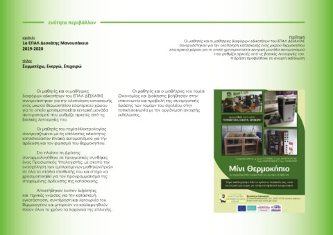 1ο ΕΠΑΛ Δεσκάτης Μανουσάκειο συνεργάστηκαν για την υλοποίηση κατασκευής ενός μικρού θερμοκηπίου