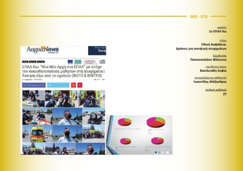 069 - 070 σχολείο 1ο ΕΠΑΛ Κω τίτλος Οδική Ασφάλεια: Δράσεις για αποφυγή ατυχημάτων διευθυντής Παπανικολάου Φίλιππος υπεύθυνος έργου Βασιλειάδη Σοφία συνεργαζόμενοι καθηγητές Ιωαννίδης Αλέξανδρος αριθμός μαθητών 27