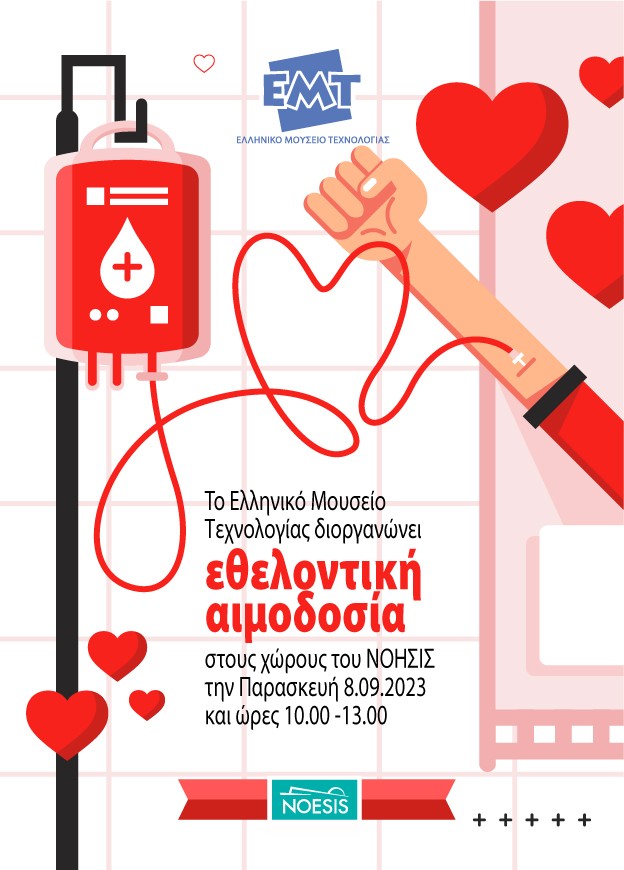 Εθελοντική αιμοδοσία διοργανώνει το Ελληνικό Μουσείο Τεχνολογίας, την Παρασκευή 8 Σεπτεμβρίου 2023, ώρες 10.00-13.00, στις εγκαταστάσεις του ΝΟΗΣΙΣ.