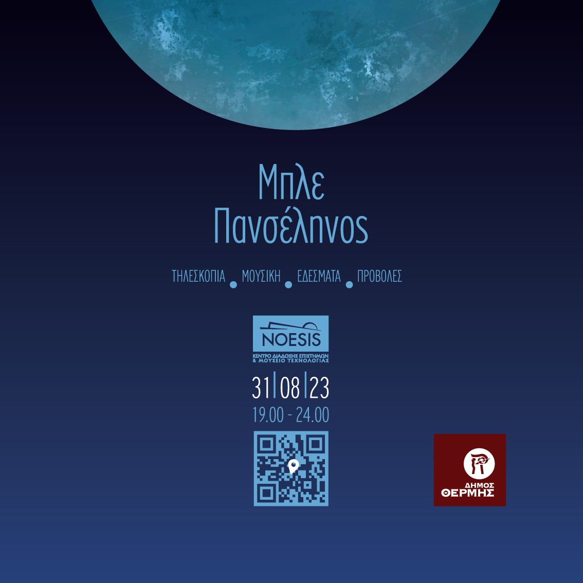 On the occasion of the “Blue” full moon, a unique evening will take place at NOESIS facilities, overlooking the Thermaikos Gulf, where young and old will have the opportunity to get to know better, not only the impressive celestial phenomenon, but much more about the Moon.