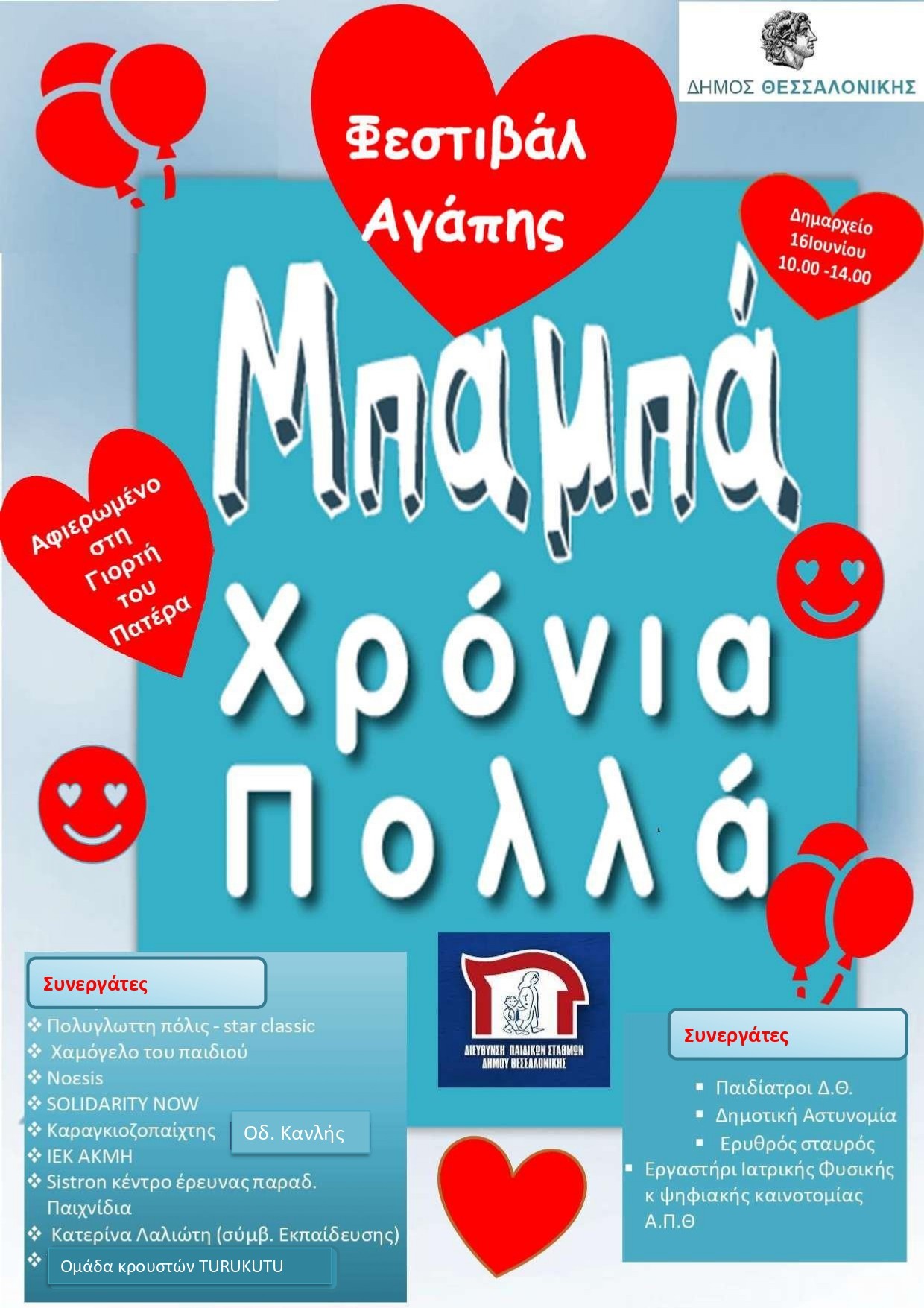 The Municipality of Thessaloniki, on Sunday, June 16, 2024, from 10.00 to 14.00, organizes the 1st Festival of Love, at the City Hall.