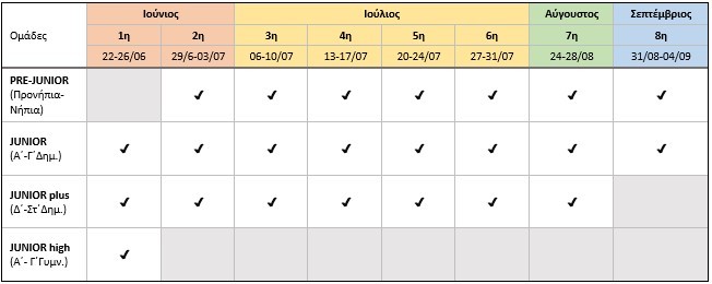 Δείτε τις περιόδους διεξαγωγής ανά ηλικιακή ομάδα στον πίνακα που ακολουθεί και προχωρήστε στην κράτησή σας.
