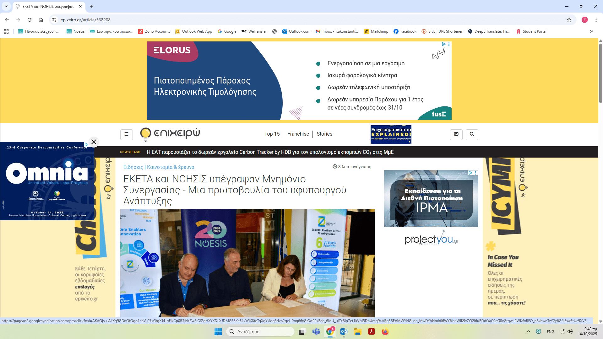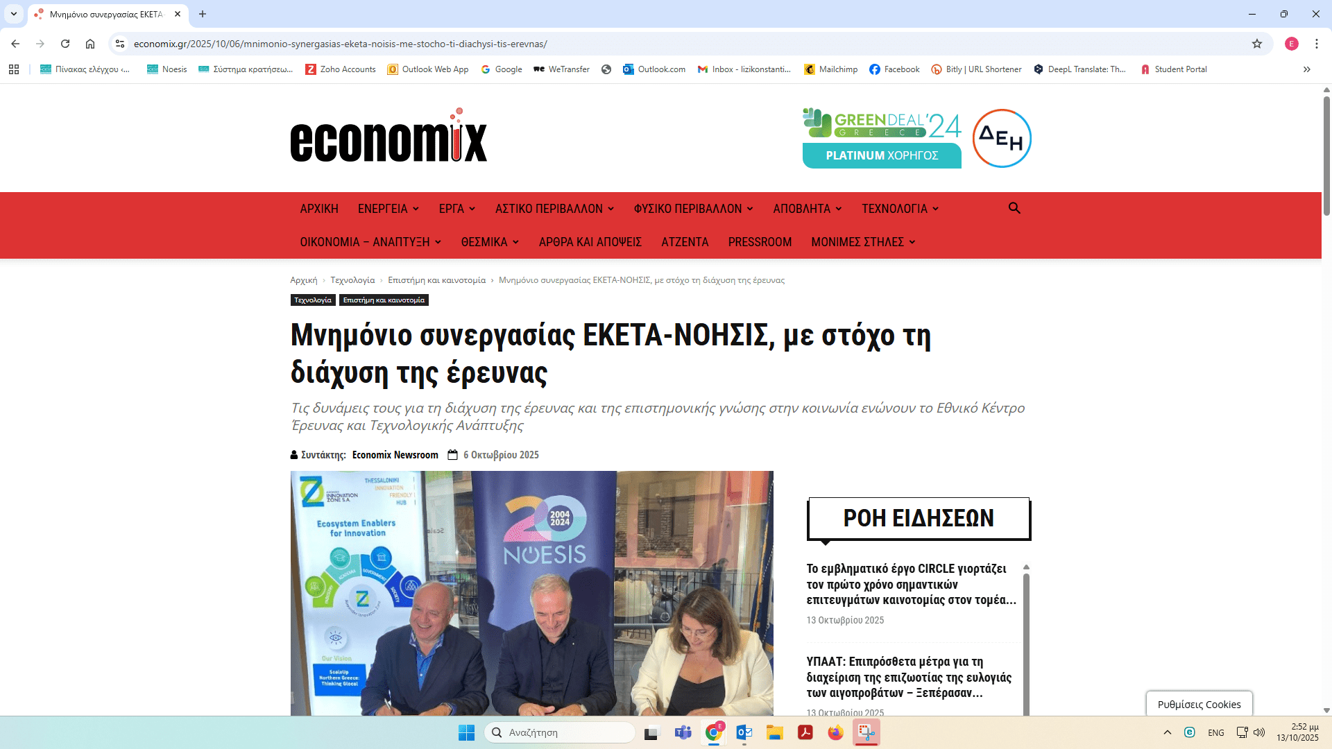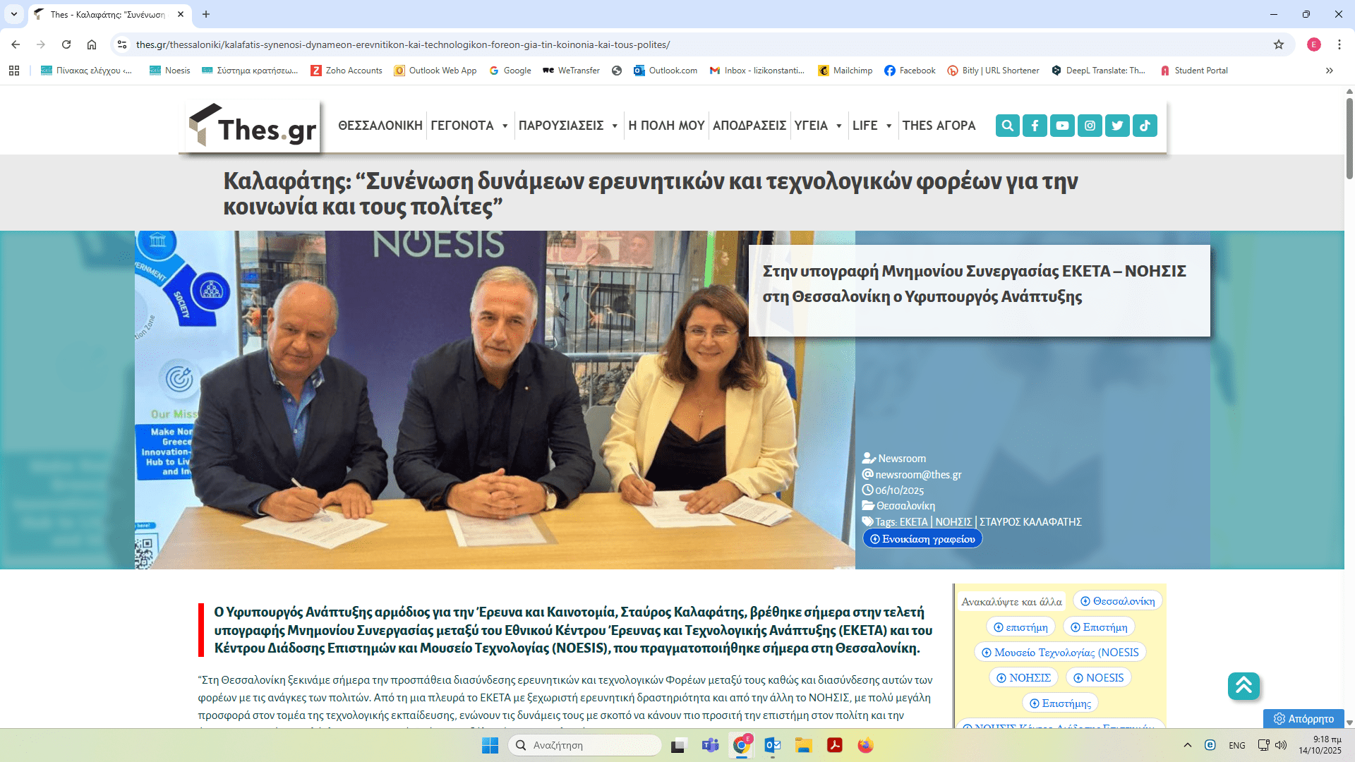 ΝΟΗΣΙΣ και ΕΚΕΤΑ υπέγραψαν Μνημόνιο Συνεργασίας – δημοσιεύματα