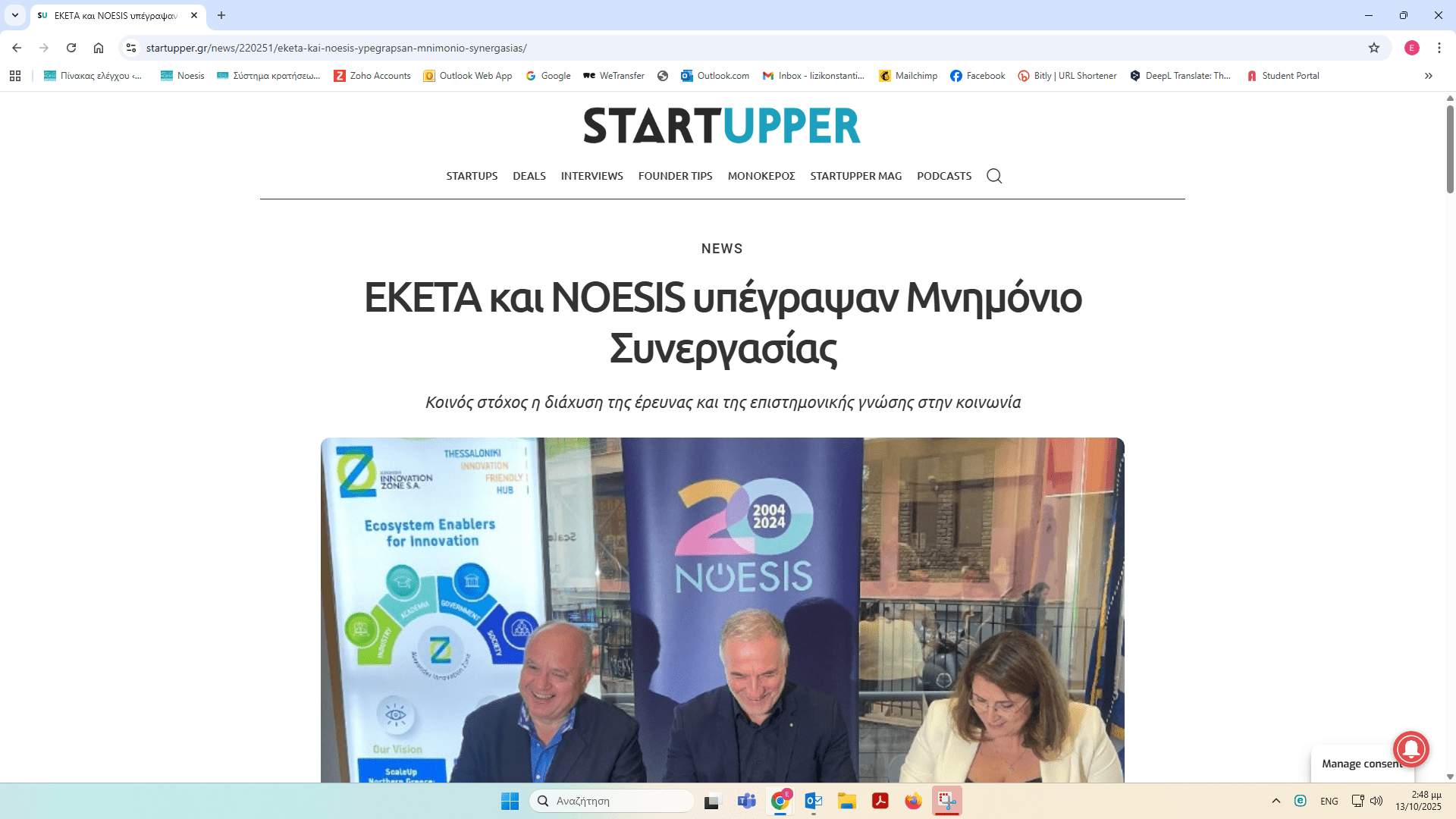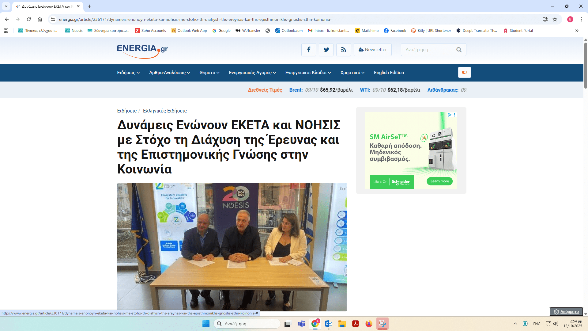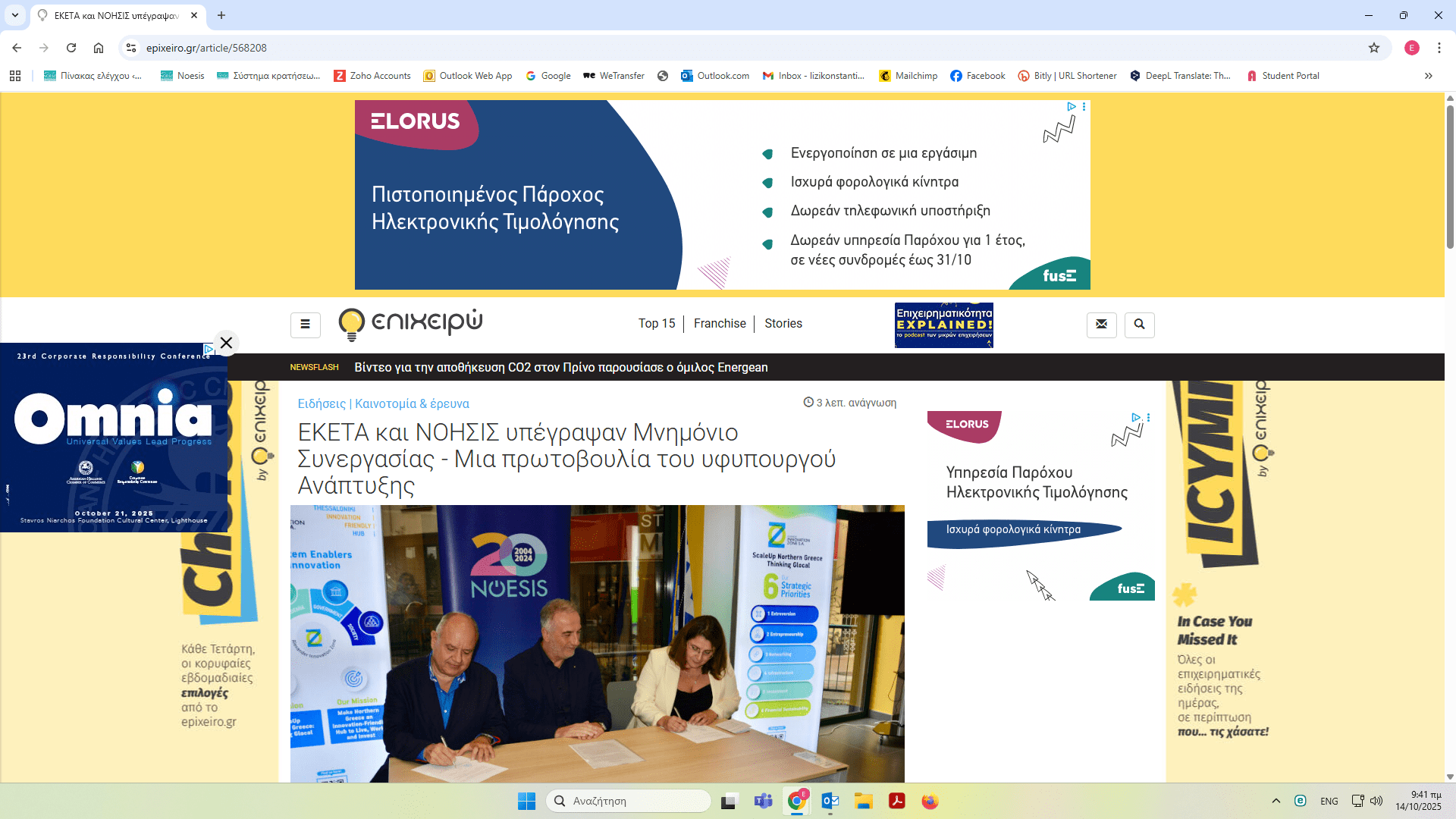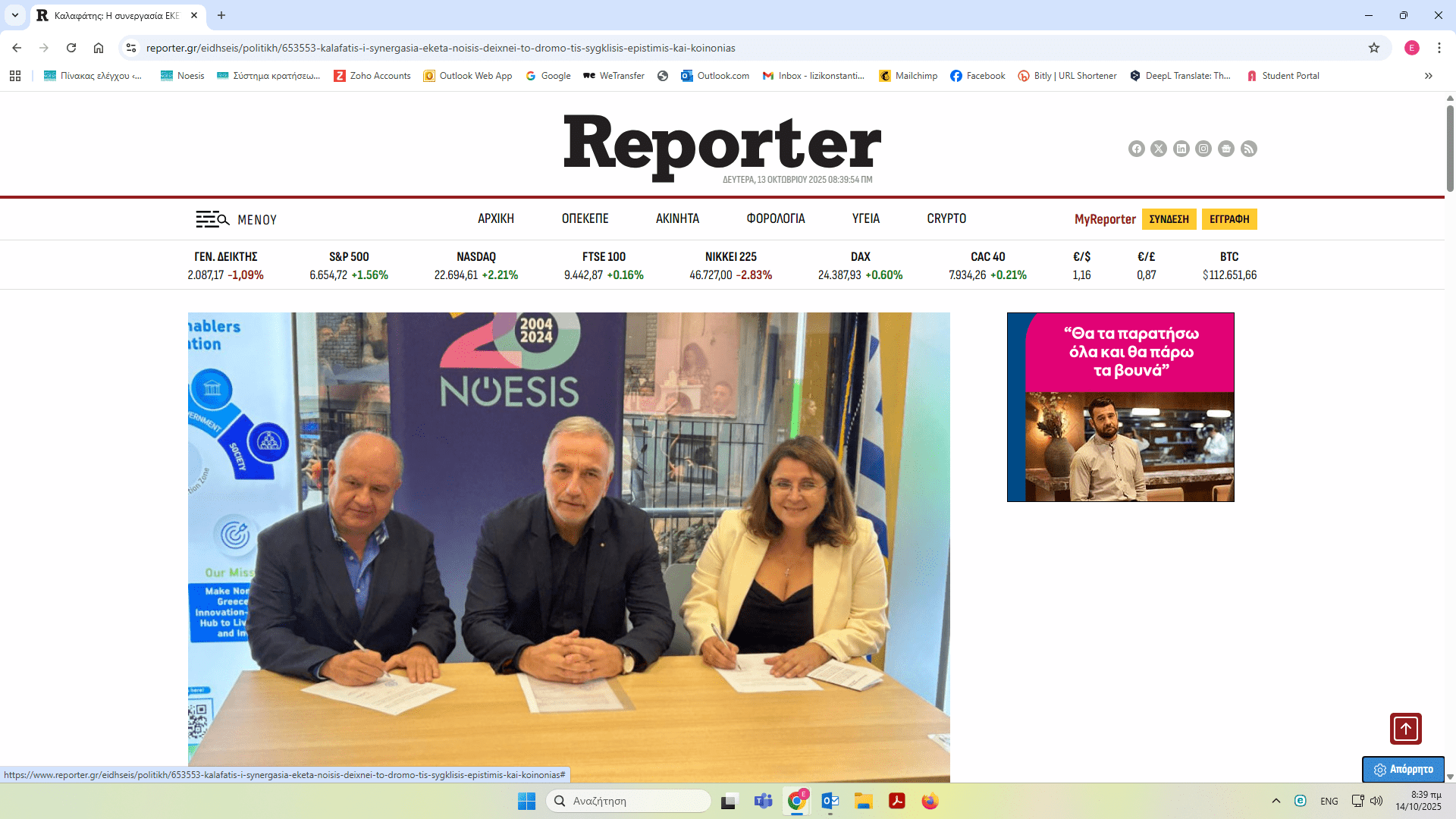 ΝΟΗΣΙΣ και ΕΚΕΤΑ υπέγραψαν Μνημόνιο Συνεργασίας – δημοσιεύματα