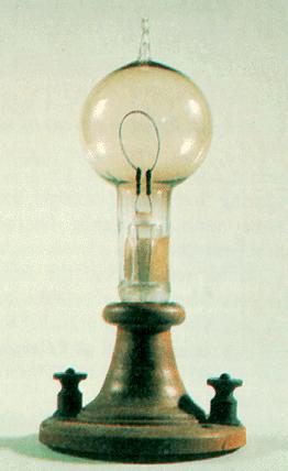 Το πρώτο έγινε με μια ιστορικής σημασίας εφεύρεση. Το 1874 ο Έντισον βρήκε τρόπο να διατηρεί τη ροή ηλεκτρικού ρεύματος σε ένα καρβουνιασμένο νήμα που βρισκόταν μέσα σε μια γυάλινη αμπούλα χωρίς αέρα. Το ηλεκτρικό ρεύμα θέρμαινε το νήμα ώσπου αυτό ακτινοβολούσε λευκό φως (λευκοπυρωνόταν). Η συσκευή ονομάστηκε ηλεκτρικός λαμπτήρας.