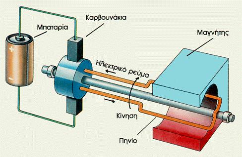 Ομως κάθε ρευματοφόρος αγωγός, που βρίσκεται μέσα σε μαγνητικό πεδίο, δέχεται κάποια δύναμη. Στην περίπτωση αυτή οι δυνάμεις που ασκούνται στην περιέλιξη, σπρώχνουν τη μια πλευρά της πρός τα πάνω και την άλλη πρός τα κάτω, με αποτέλεσμα αυτή να περιστρέφεται. Γι’ αυτό και το σύρμα λέγεται “ρότορας”, ενώ ο ηλεκτρομαγνήτης “στάτορας”.