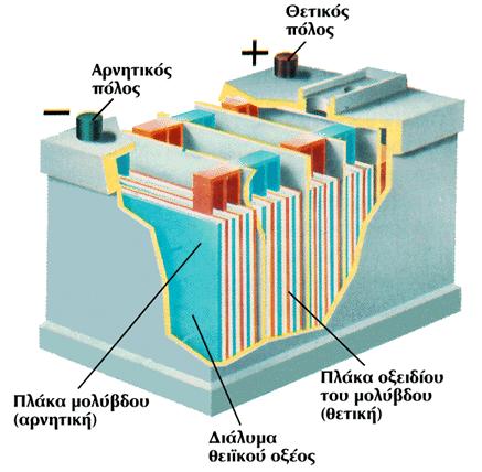 Ένα ή πολλά ηλεκτρικά στοιχεία στη σειρά, σχηματίζουν μία μπαταρία. Έτσι έχουμε τις υγρές μπαταρίες οι οποίες αποτελούνται από επαναφορτιζόμενα ηλεκτρικά στοιχεία και τις ξηρές μπαταρίες, οι οποίες έχουν μη επαναφορτιζόμενα. Οι υγρές μπαταρίες χρησιμοποιούνται κυρίως στα αυτοκίνητα και λέγονται έτσι επειδή ο ηλεκτρολύτης τους είναι υγρός.