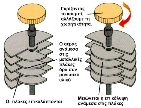 Σε άλλους όμως, οι οπλισμοί είναι δυνατόν να μετακινηθούν, αλλάζοντας έτσι και την τιμή της χωρητικότητας. Οι τελευταίοι πυκνωτές λέγονται μεταβλητοί.