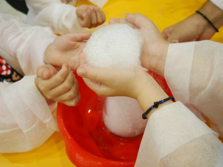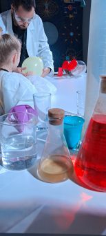 Στη συνέχεια τα παιδιά επισκέπτονται το εργαστήριο και συμμετέχουν σε εντυπωσιακά πειράματα.