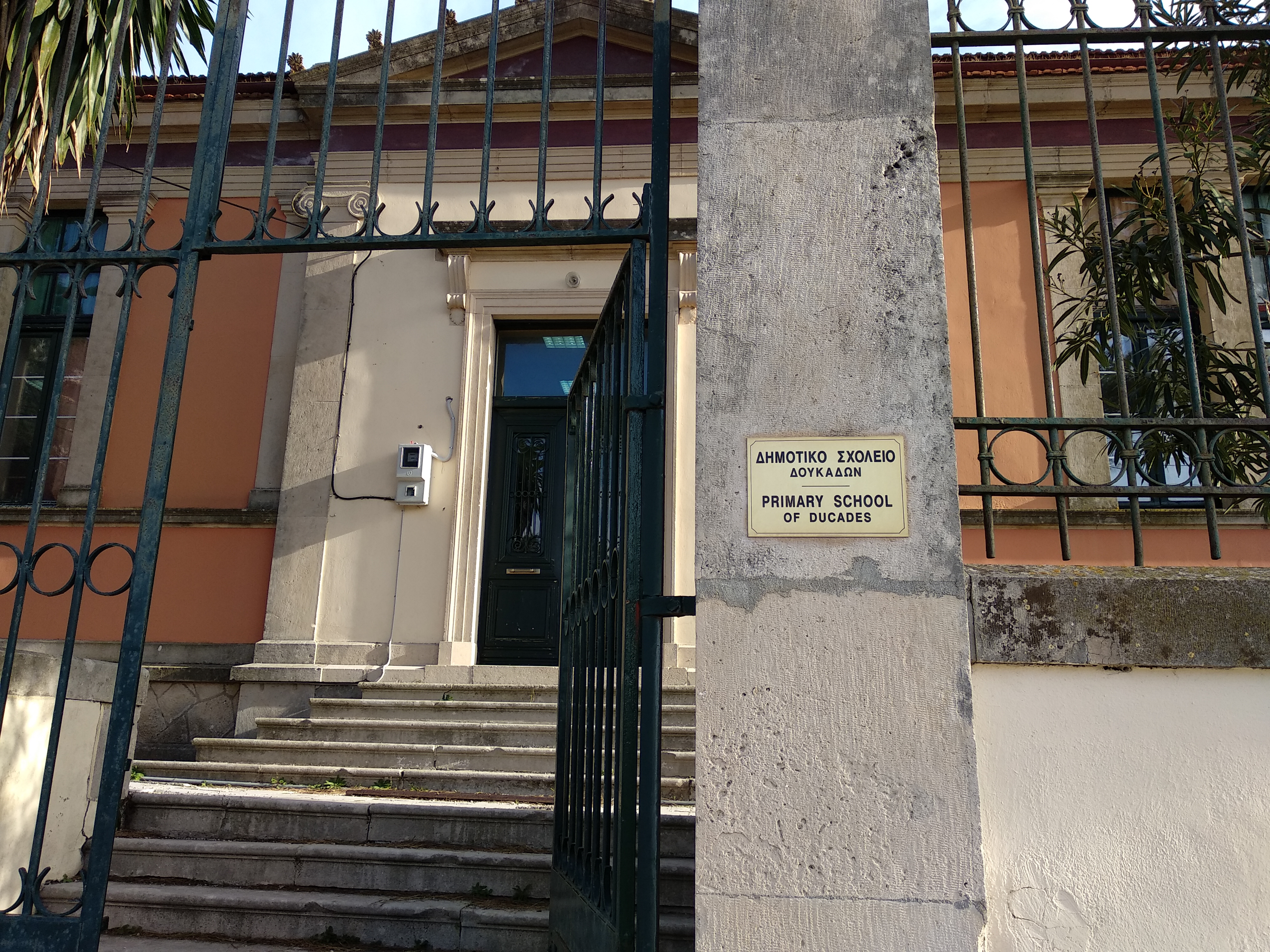 Την Πέμπτη 7/2, τελευταία ημέρα του ταξιδιού μου στην Κέρκυρα, επισκέφθηκα το Δημοτικό Σχολείο Δουκάδων. Στο μικρό ορεινό χωριό με υποδέχθηκαν ο υποδιευθυντής κ. Στραβοράβδης και οι εκπαιδευτικοί του σχολείου. Στη συνέχεια τακτοποιήσαμε με τη βοήθεια των παιδιών τη μεγάλη αίθουσα του σχολείου, ώστε να μπορέσει να φιλοξενήσει τις δύο μεγάλες τάξεις συνολικής δύναμης 19 μαθητών. Κατά το χωρισμό σε ομάδες τα παιδιά πρότειναν να χωριστούν στα δύο, Πέμπτη εναντίον Έκτης, αφού όμως εξήγησα τη διαδικασία και τους ρόλους κατάλαβαν ότι έπρεπε να σχηματιστούν μικρότερες ομάδες. Αφού λοιπόν παίξαμε ένα – δυο δοκιμαστικούς γύρους, οι ομάδες οριστικοποιήθηκαν και το παιχνίδι άρχισε. Με δυσκολία καταφέραμε να διακόψουμε σε κάποιο σημείο ώστε να μείνει λίγος χρόνος για συζήτηση και ανασκόπηση. Το ενδιαφέρον των παιδιών ήταν έντονο για τα θέματα των Ανανεώσιμων Πηγών Ενέργειας και του Περιβάλλοντος γενικότερα. Μου δημιουργήθηκε τελικά η εντύπωση ότι το επιτραπέζιο που άφησα στο σχολείο δε θα αραχνιάζει σε κάποιο ράφι. Με τις καλύτερες εντυπώσεις και τις ευχές παιδιών και εκπαιδευτικών αποχαιρέτησα τους Δουκάδες και λίγες ώρες αργότερα το υπέροχο νησί της Κέρκυρας.
